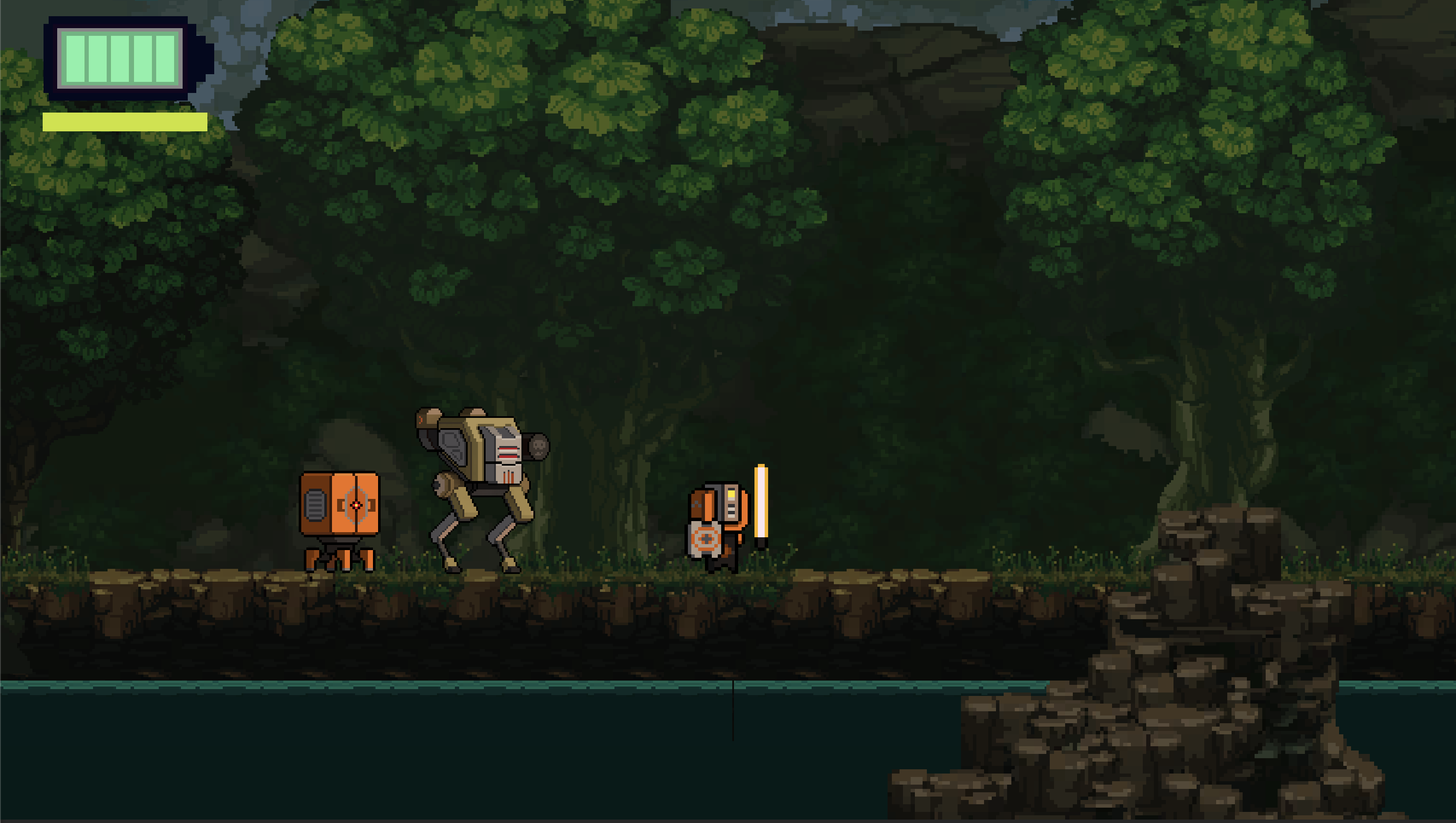 - Red Robot — Uses a sword to destroy obstacles and enemies.