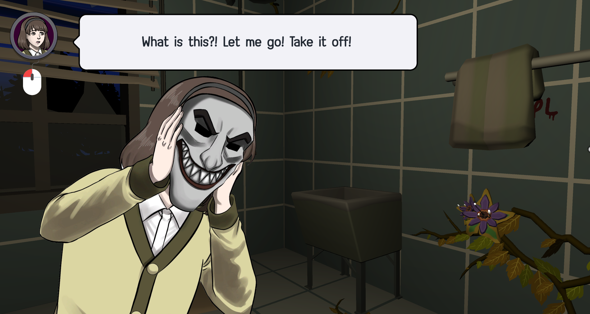 You play as a young girl who enters an abandoned house while searching for her lost cat. Inside, she encounters a mysterious talking mask that can reveal hidden hints — but only when worn.